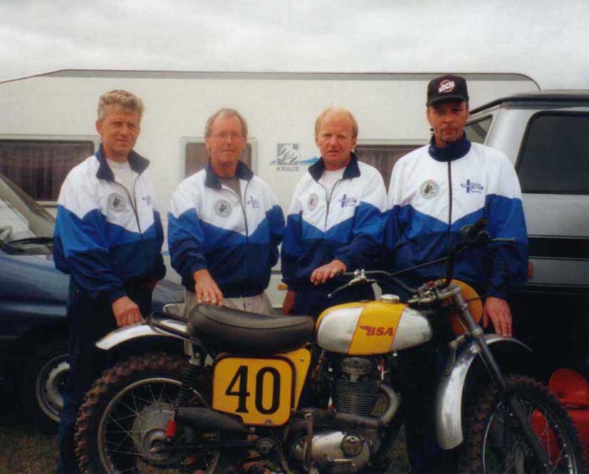 Perjantaina oli vuorossa katsastus, jossa puututtiin erityisesti kahteen seikkaan: kiinteisiin jalkatappeihin ja takaiskunvaimennuksen pituuteen. Säännöt kieltävät selkeästi kiinteät jalkatapit koska ne ovat turvallisuusriski. Tällaiset tavattiin kuudesta pyörästä ja ne vaihdettiin kääntyviin samana iltana, kovasta vastustuksesta huolimatta. Hitsipilli antoikin mukavasti lisävaloa pimenevään yöhön. Mainittakoon että nämä muutokset eivät koskeneet Suomen joukkuetta. Toinen ongelma eli takaiskunvaimennus sen sijaan nousi kuumaksi aiheeksi myös meidän leirissämme. Katsastajat paneutuivat tiukasti 50+ joukkueessa ajaneen ruotsalaisvahvistuksen, Kenneth Reinerstedtin Cheney-BSA:n jousitukseen ja saivat mitattua siitä 130 mm:n jouston kun vain 100 mm sallitaan. Lisäksi ylitystä löytyi yhdeksästä muustakin pyörästä. Joukkueenjohtajien kokouksessa sovittiin että 15% ylitys sallitaan ja sen yli menevistä joukkueelle annetaan virhepisteitä. BSA (joka on muuten Bengt Åbergin ex-tehdaspyörä) oli kuitenkin alkuperäisessä kunnossaan, joten se vietiin kokouksen jälkeen uudelleen katsastukseen, ja lopputuloksena oli että pyörä todettiin kaikin puolin hyväksytyksi. Joukkueenjohtajat arpoivat myös puomillemenojärjestyksen. Siinä oli onni myötä sillä 40+ joukkueemme sai numeron 1 ja 50+ sijoituksen 6.